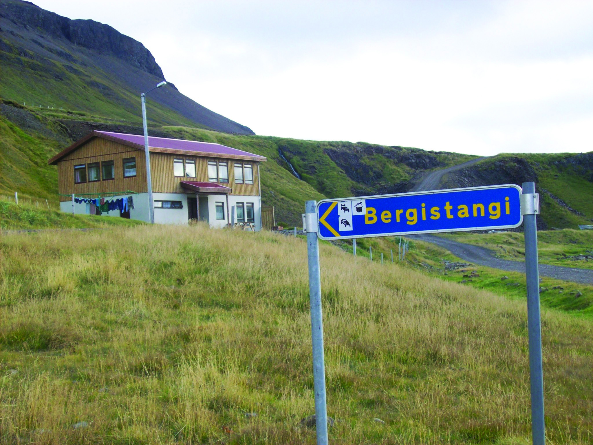 Hins vegar er gisting í frystihúsi, sem var byggt í tengslum við sláturhús á staðnum, og var notað sem slíkt í þrjátíuár. Tímarnir breytast og svo er komið árið 1992, að ekki er lengur þörf fyrir frystihús. Fyrir nokkrum árum réðust eigendur hússins, í að breyta því í gistihús, og hefur það verið notað. Í húsinu eru þrjú herbergi, (klefar) notuð fyrir gistingu. Kojur eru herbergjunum, sem eru misstór, átta kojur í stærsta herberginu og sex í hvoru hinna tveggja, samtals tuttugu. Í kojunum, sem eru á tveimur hæðum, eru góðar dýnur. Handlaugar eru í herbergjunum. Snyrting er einnig í húsinu. Rúmgott eldhús er og mjög góð eldunaraðstaða. Sjónvarp er í matsal.